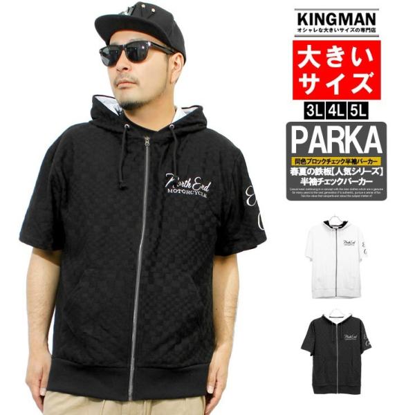 パーカー メンズ 大きいサイズ 半袖 ジップアップ ブロックチェック 刺繍 プリント 薄手 スウェット カットソー おおきいサイズ 新作 Kingman 通販 Yahoo ショッピング